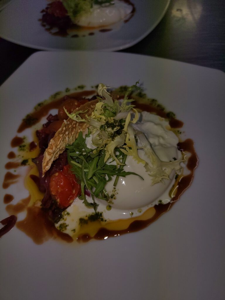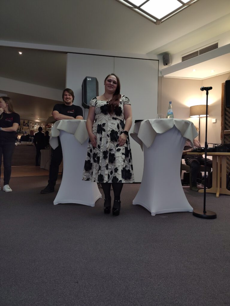 Der Chefkoch Federico Winkler stellte ein köstliches Vier-Gänge-Menue zusammen, das durch die helfenden Hände der „Lions und Mukos“ entstand. Der Abend wurde musikalisch eingeleitet durch die Sängerin Barbara Karhausen.
