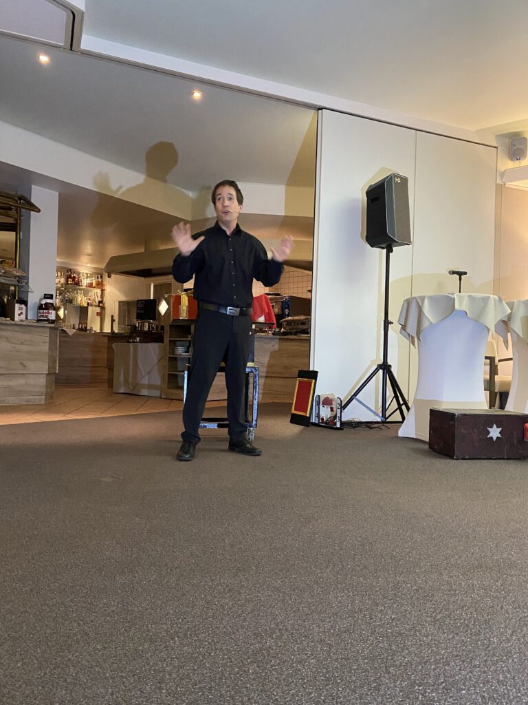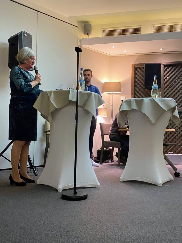 Wolfgang Winkler begrüßte als erstes die Festgäste. Nachfolgend richteten Lions-Präsidentin Brigitte Groß-Bürger und die 1. Vorsitzende des Mukoviszidose Vereins Gabriele Neumann ihre Worte an die Gäste. Die Schirmherrin Frau Sabine Verheyen, Vizepräsidentin des Europaparlaments, wies in ihrer Rede auf die große Notwendigkeit des Ehrenamtes in der Gesellschaft hin. Durch den Abend führte Christoph Ohlenforst. Als Höhepunkt kündigte er den Zauberer und Mental-Magier Patrick Mirage an. Eine zauberhafte und magische Stunde begeisterte die Gäste.